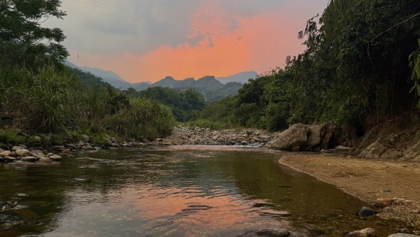 Même une fois arrivés à notre point de chute pour les 3 jours suivants, le paysage était tout simplement magique. J’aurais pu rester des heures collée à la fenêtre de notre chambre si les montagnes ne m’avaient pas appelé à les explorer dans leur entièreté. Chaque soir, le soleil disparaissait entre cimes et nuages, inscrivant son art dans le ciel malléable. Il offrait alors l’opportunité au torrent de troquer sa robe bleutée pour une parure écarlate le temps d’un instant.
