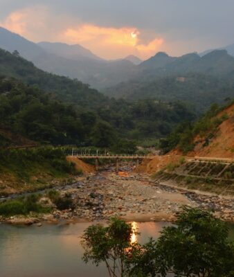 Torrents de montagne, rizières en terrasse, jungle sauvage. Dès que nous passions le col d’un sommet, un nouveau monde s’offrait à nous. Parfois, nous coupions le moteur des motos et nous nous laissions descendre, bercés par les sons de la forêt. D’autres fois, nous profitions d’une portion de route lisse pour ouvrir les gaz et nous envoler dans le dévalé qui nous séparait de la prochaine ascension. Des heures durant, nous avons valsé avec les montagnes au fil de leurs virages sinueux.